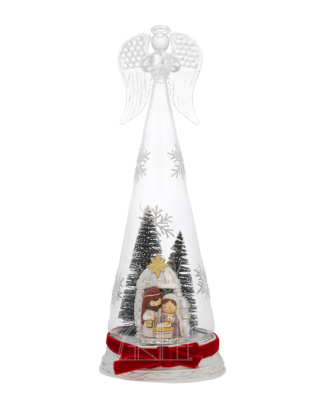 Decorazione Cono Vetro Rappresentante Angelo con Alberi LED Verdi E con Presepe.