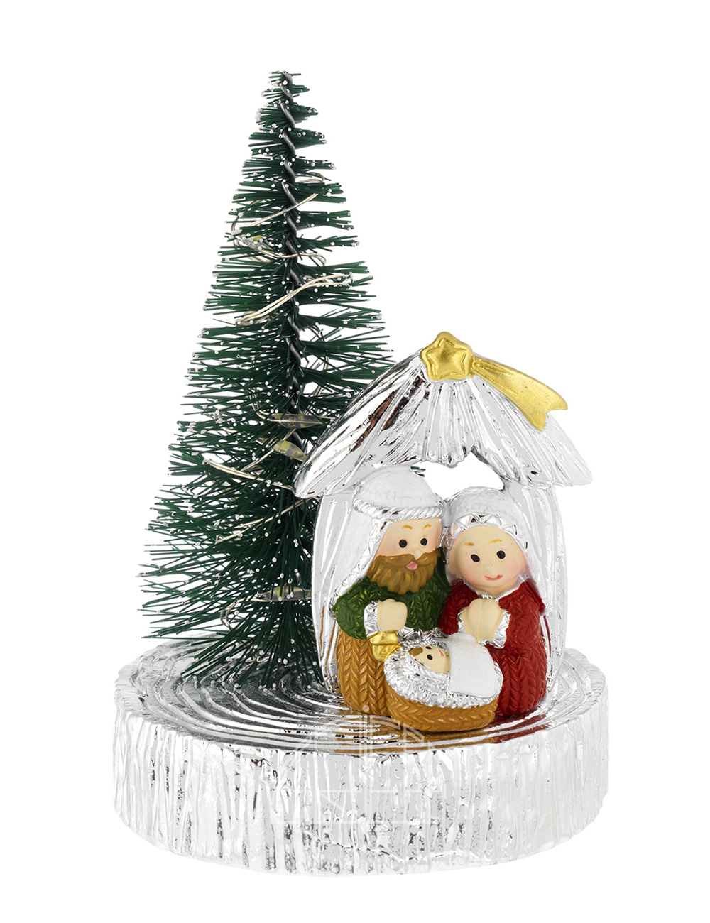 Tronco Argentato Con Presepe e Albero Led 10 CM