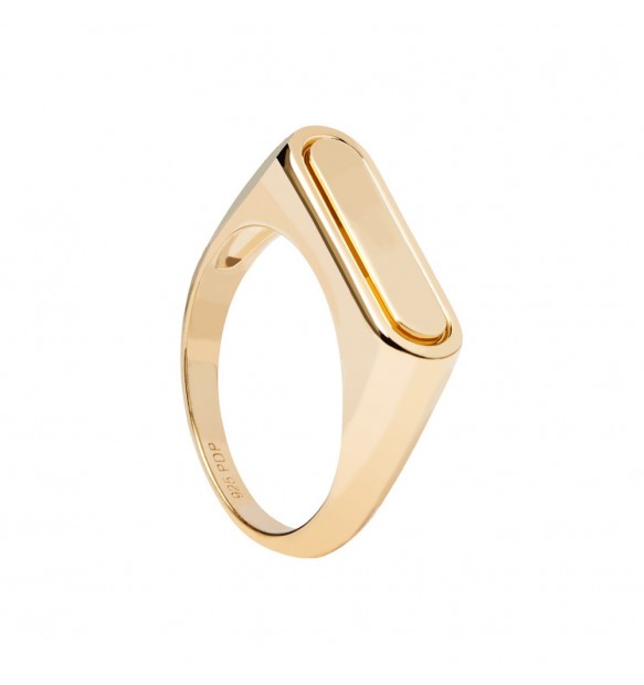 Anello da donna realizzato in argento 925% con finitura in oro 18kt. Base piatta ovale incidibile dalle dimensioni di 1,7 cm x 0,6 cm.