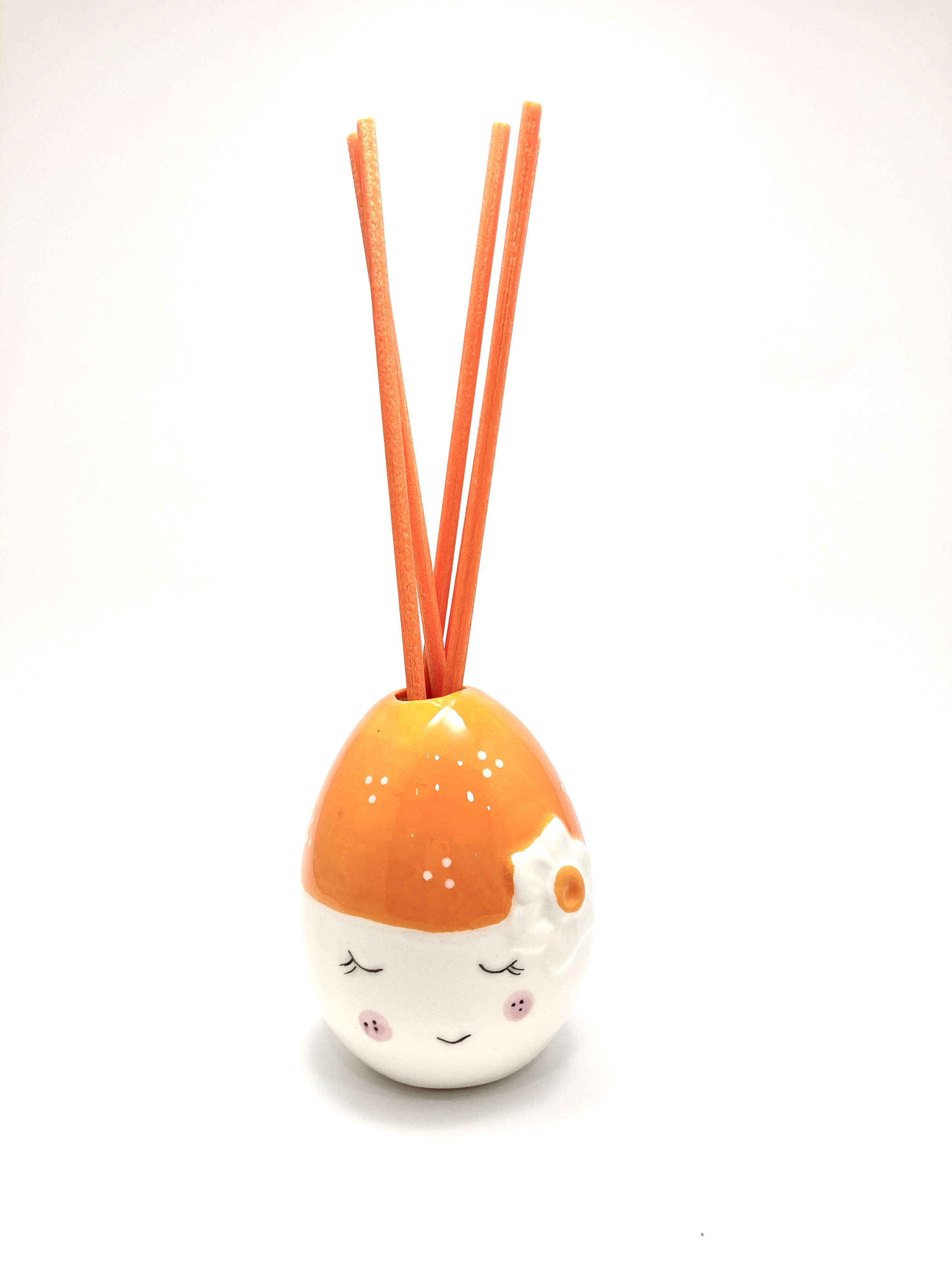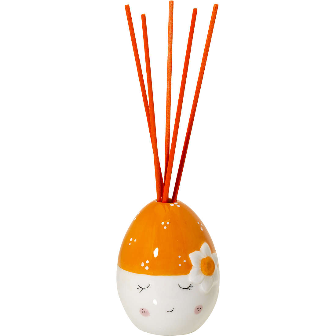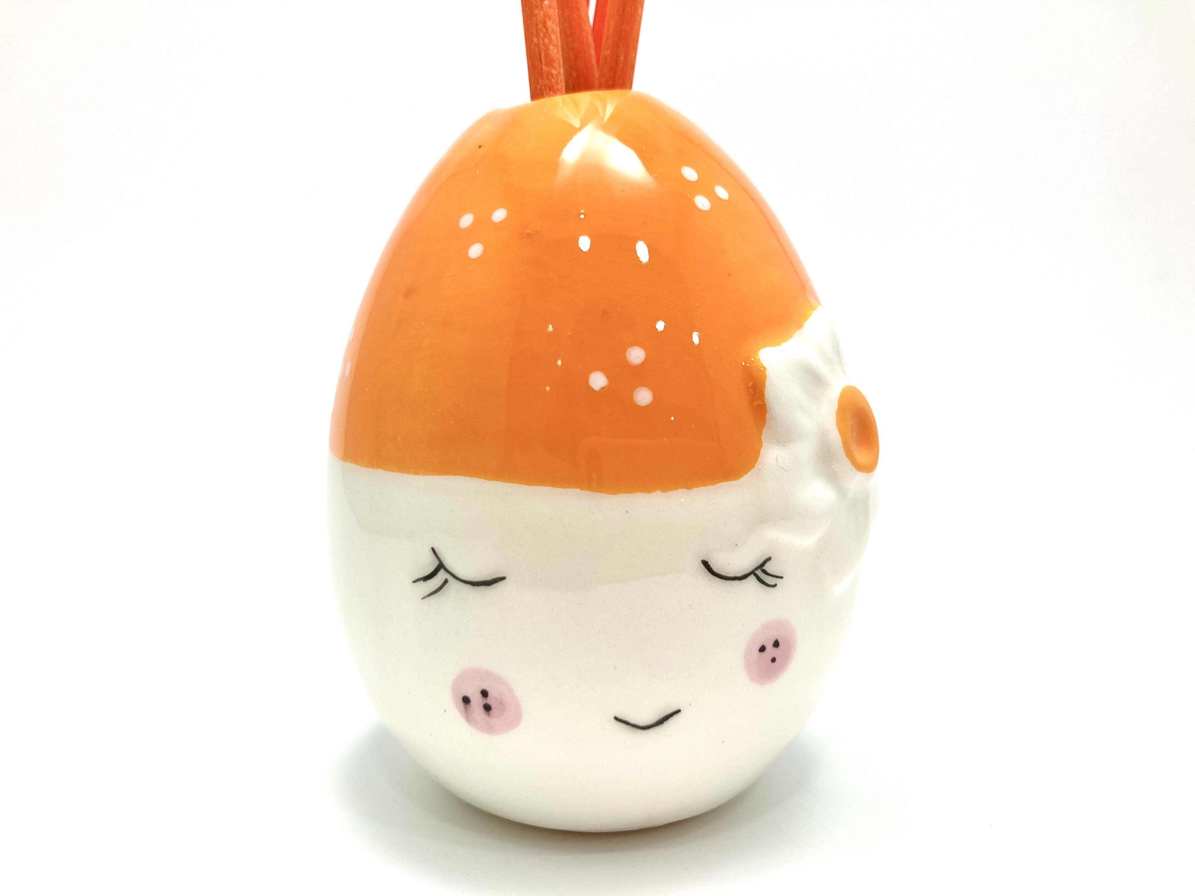 Uovo di Pasqua 2057-01 Bagutta. Diffusore con occhi chiusi di colore arancione. Materiale: porcellana. Dimensioni 25X10 Cm.