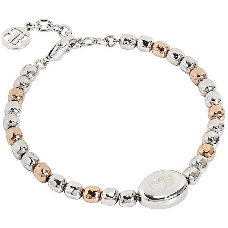 Bracciale Beads Bicolor Con Doppio Cuore Laserato