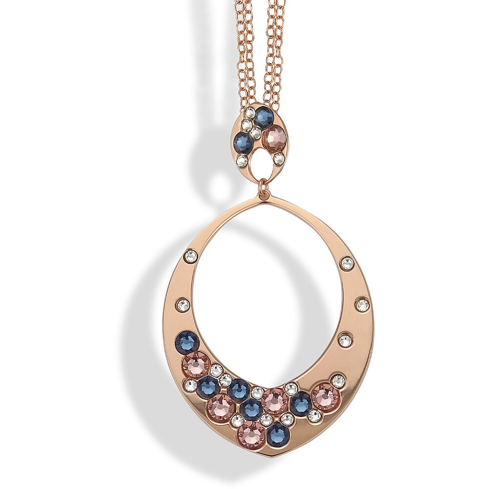 Collana da donna di Boccadamo della linea mediterranea della collezione harem. Collana color oro rosa con pendente navette e cristalli. Collana lunga placcata oro rosa con pendente navette decorato da cristalli crystal, denim blue e vintage rose. Materiale: bronzo. Produzione: realizzato in italia. Misure: lunghezza cm 80. Dimensione: pendente cm 4x6,5. Chiusura: con moschettone. La referenza è xgr657rs