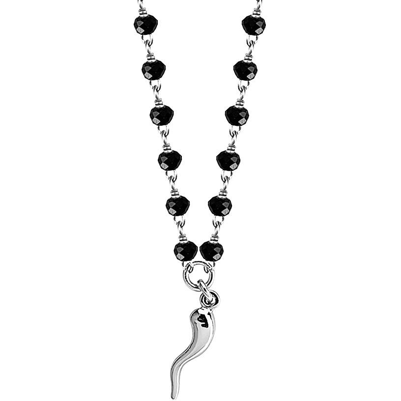 Collana Con Cristalli Neri E Corno Portafortuna Pendente Boccadamo IK/GR21. L'articolo verrà spedito con scatola originale.