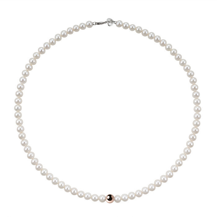 Collana di Perle da Donna in Oro Bianco Della Collezione ' Paradise ', con Chiusura e Perla Centrale Oro.