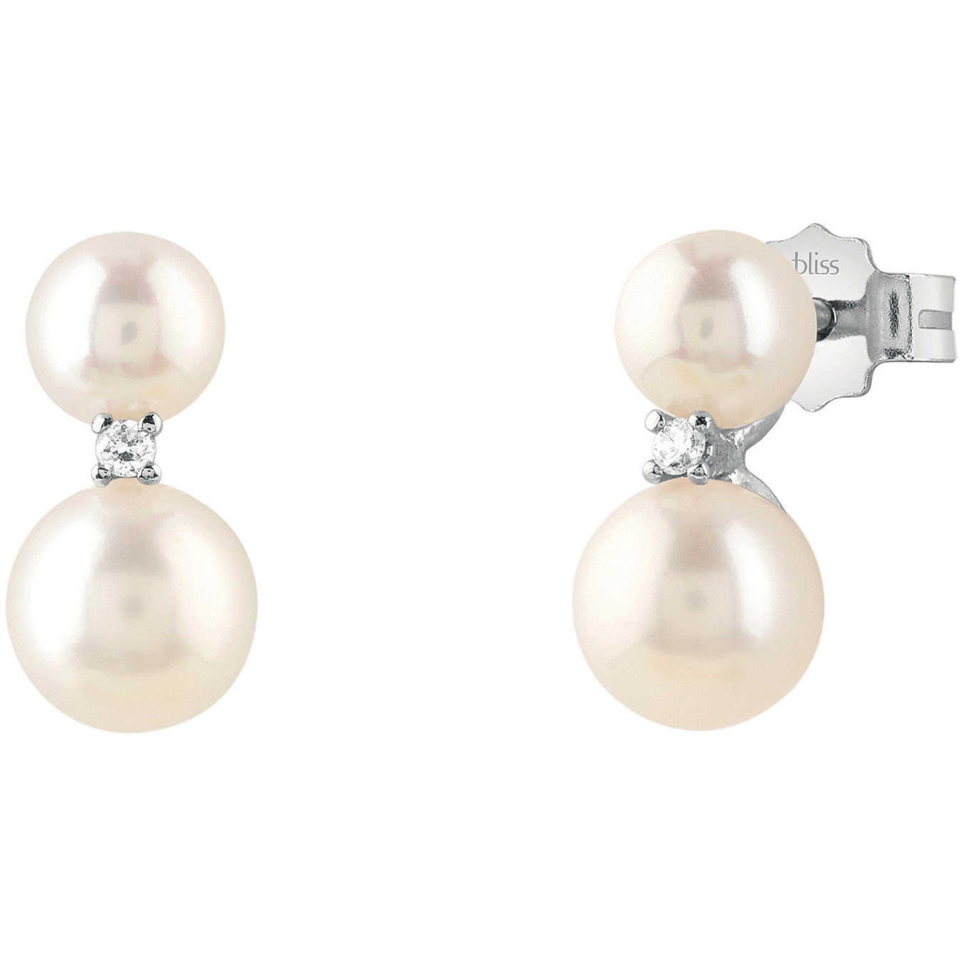 Orecchini Da Donna Di Bliss Della Collezione Paradise. Gioiello In Oro 18 Carati Bianco Con Diamante Di 0,02 Carati Del Colore Gh E Perla Del Diametro Di 5/6Mm Di Colore Bianco. La Referenza È 20086858