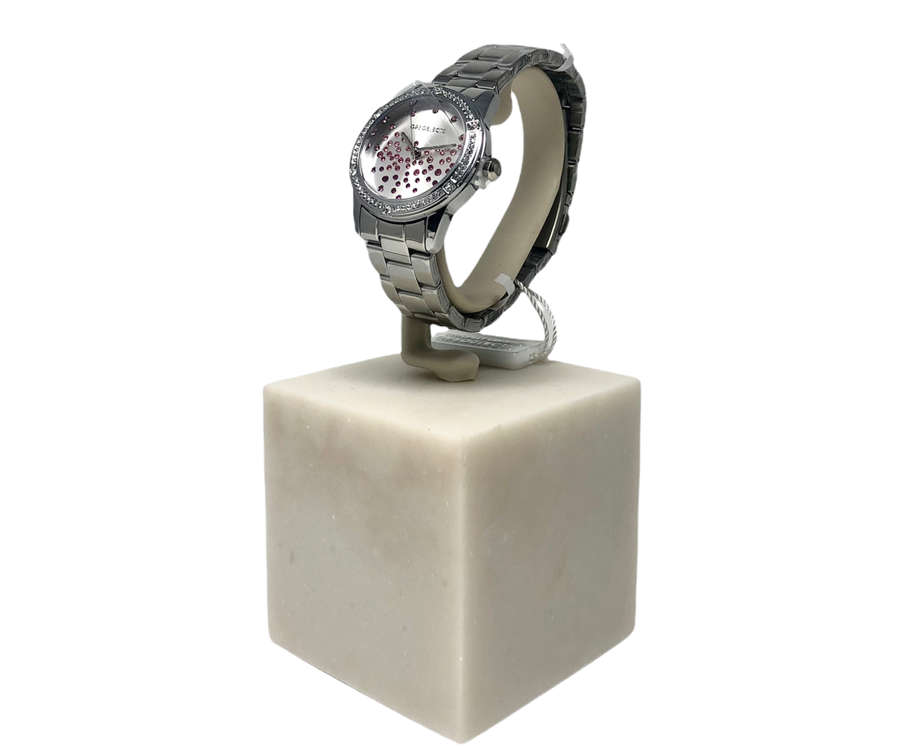 Orologio Con Cassa e Cinturino In Metallo, Lunetta con Cristalli Rosa.