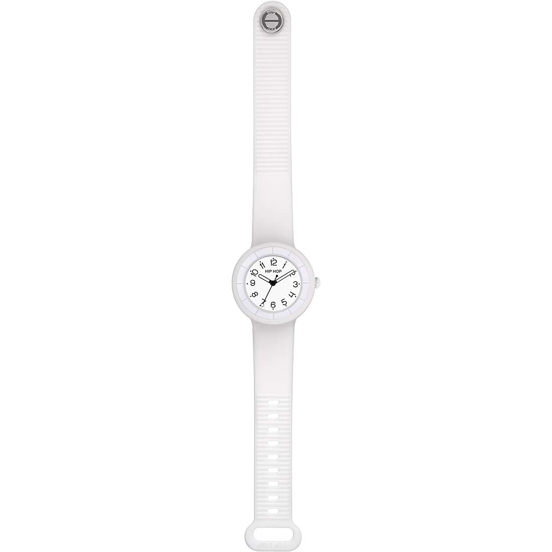 Watch Only Time Hero.Dot Hip Hop Woman From the New Hero Collection. Three Hands Only Time Clock With 34 Mm Case. Miyota 2035 Quartz Movement. Watch With White External Bezel. Indexes: Black Numbers. White Dial. The strap is in white silicone. The Resistance to Water is 5 Atm. The reference is Hwu1096
