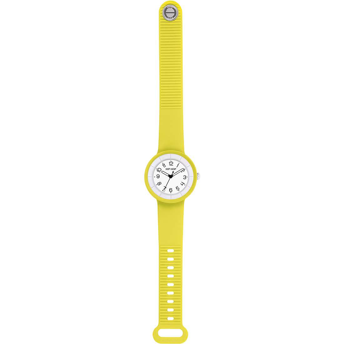 Watch Only Time Hero.Dot Hip Hop Woman From the New Hero Collection. Time Only Watch With 34 Mm Case Quartz Movement Miyota 2035. Watch With White External Bezel, Black Spheres With White Dial And Black Numbers. The strap is in yellow silicone. The Resistance to Water is 5 Atm. The reference is Hwu1098