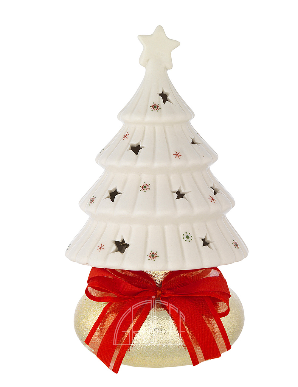 Albero Con Tea Light In Porcellana H. 17 Cm