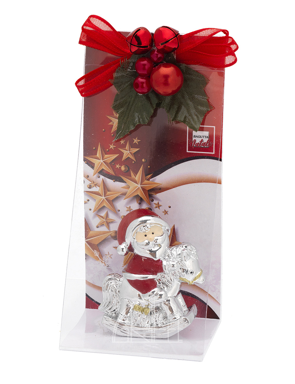Babbo Natale Su Cavallo Rosso H.13 CM