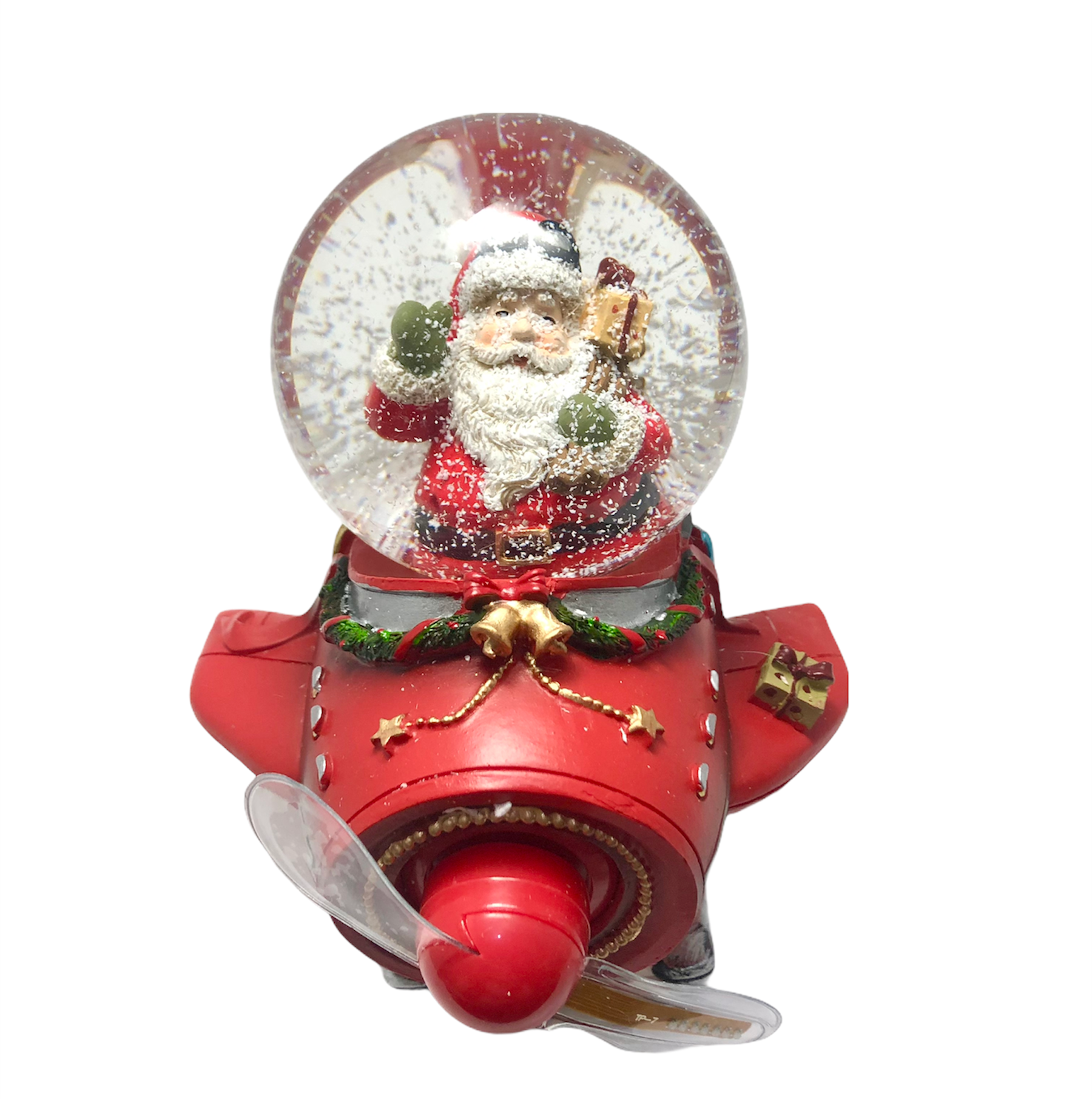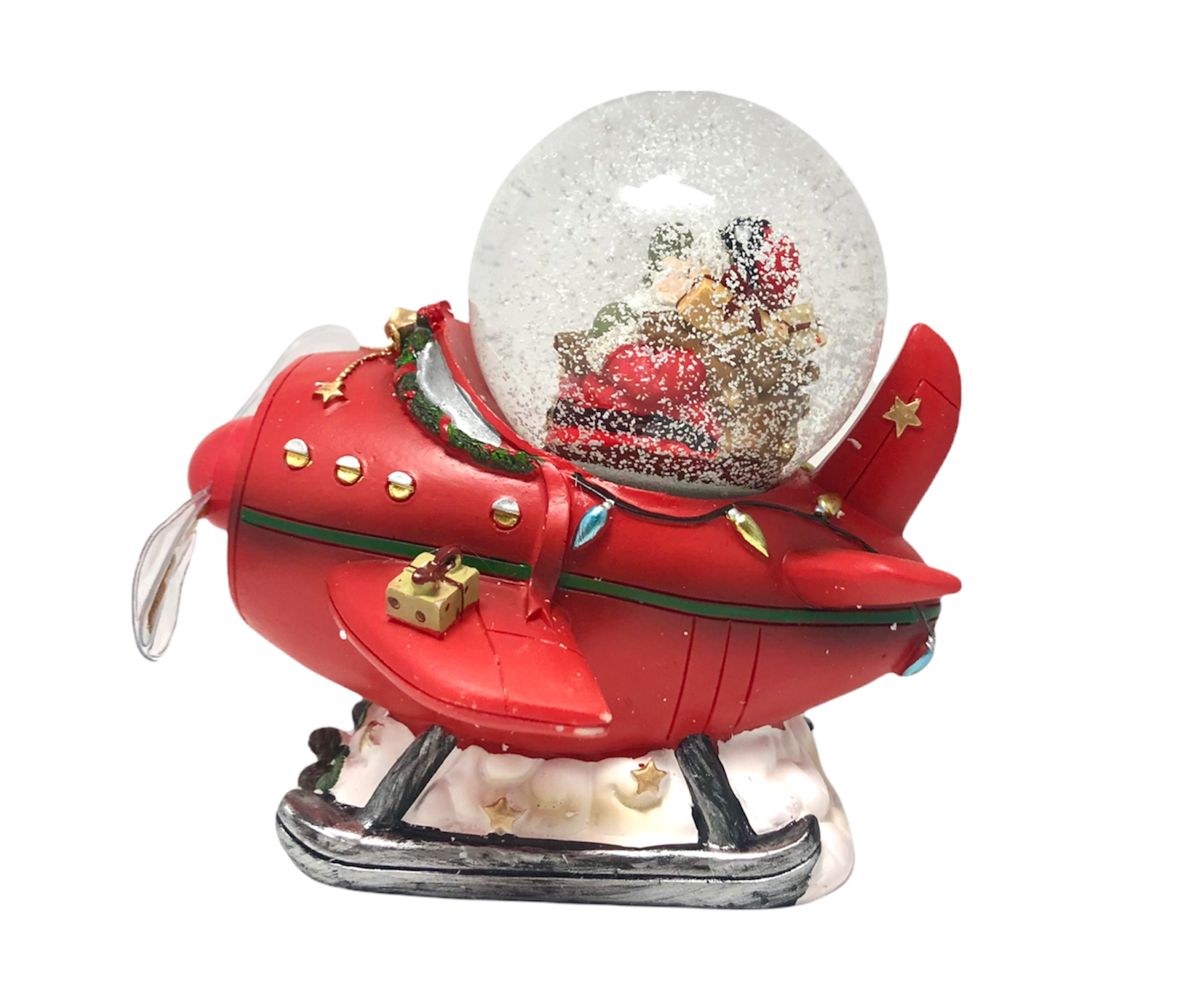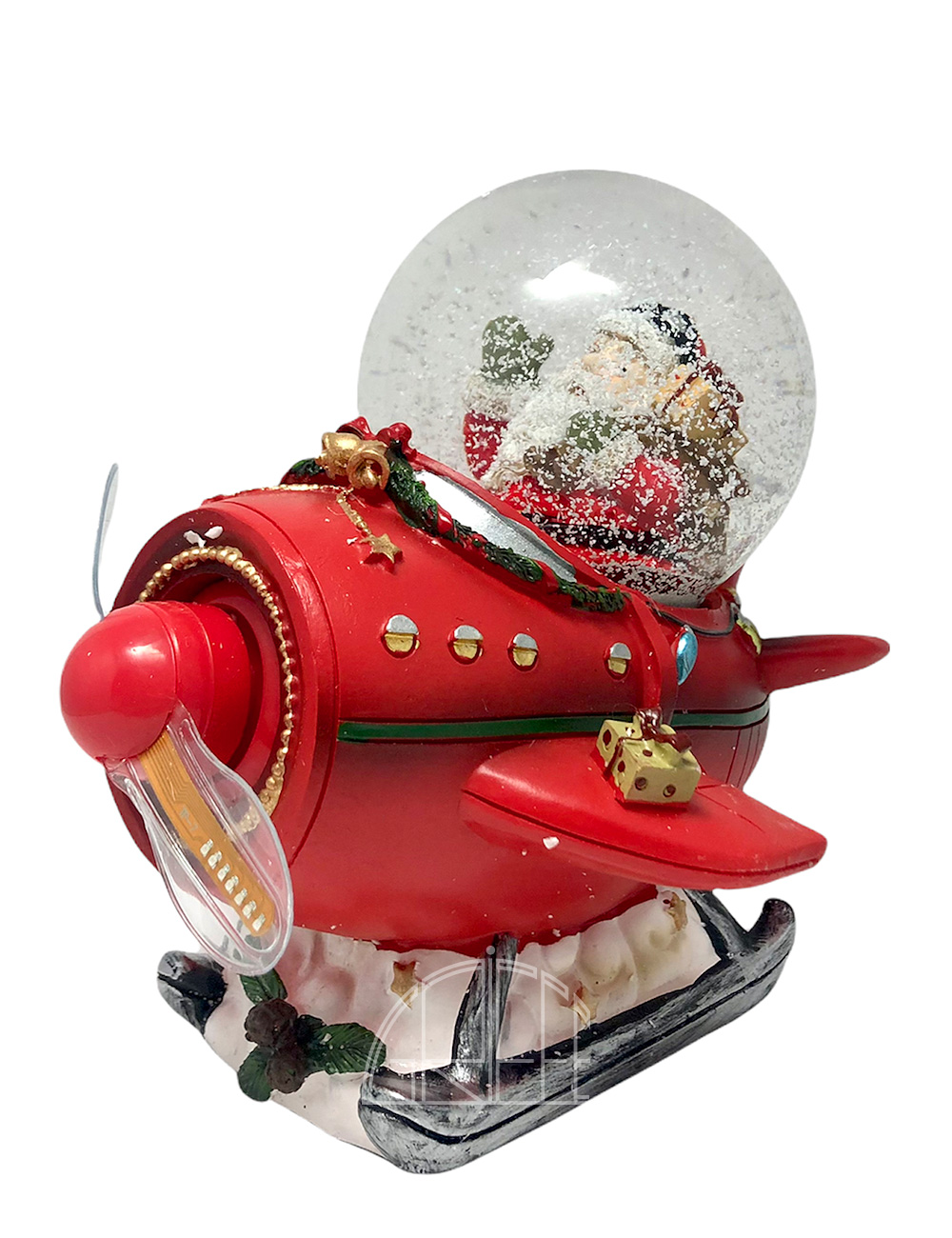 Sfera Boule Vetro Neve su Aereo Rosso con Led