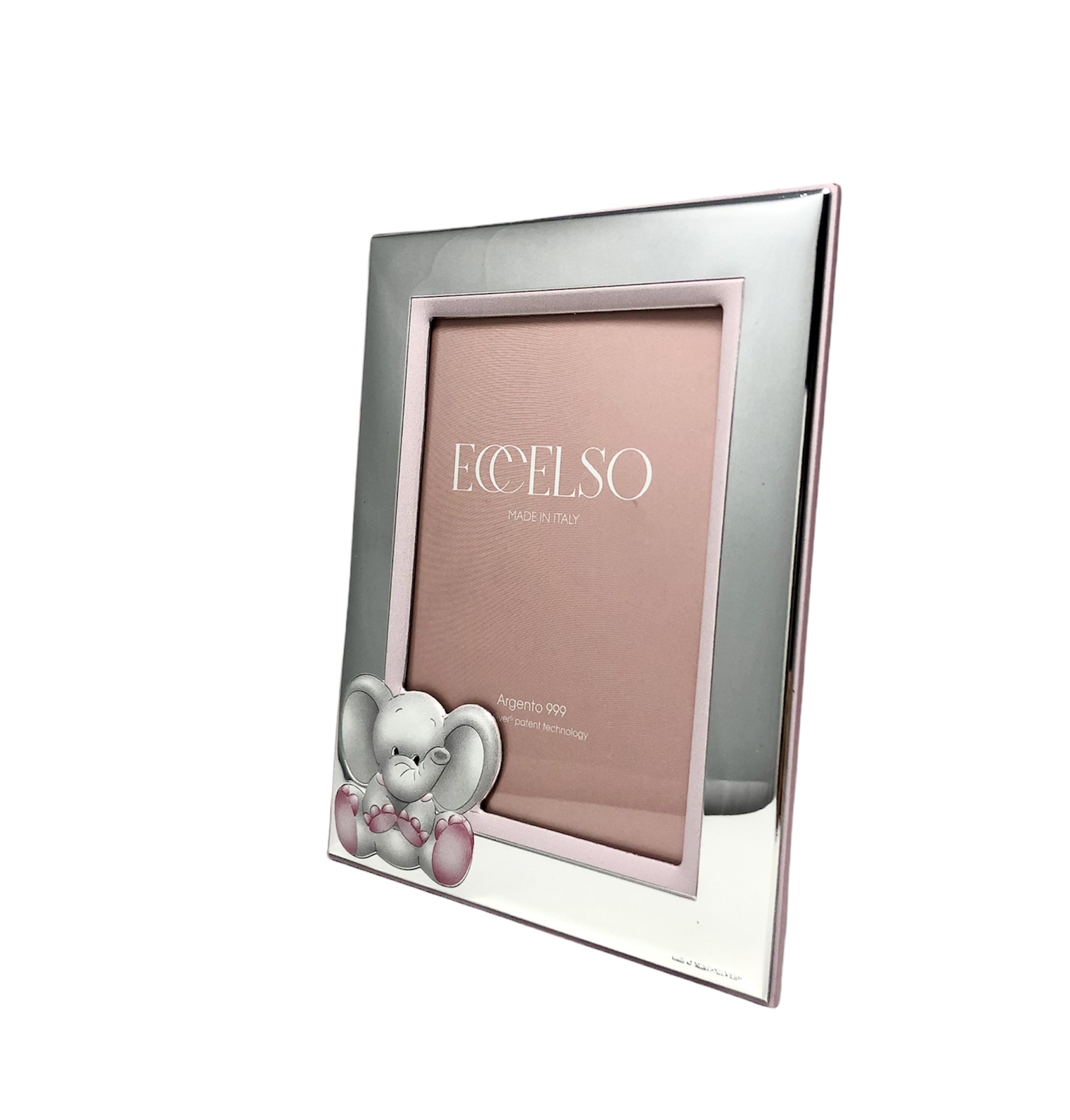 Cornice Argento Bimba Con Elefante Rosa 9X13 CM