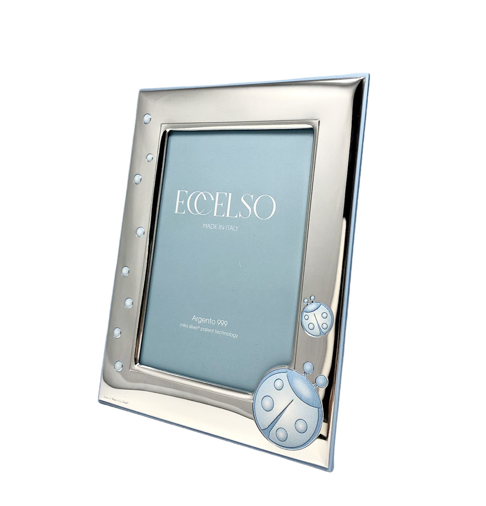 Cornice Argento Bimbo Con Coccinella Celeste 13X18