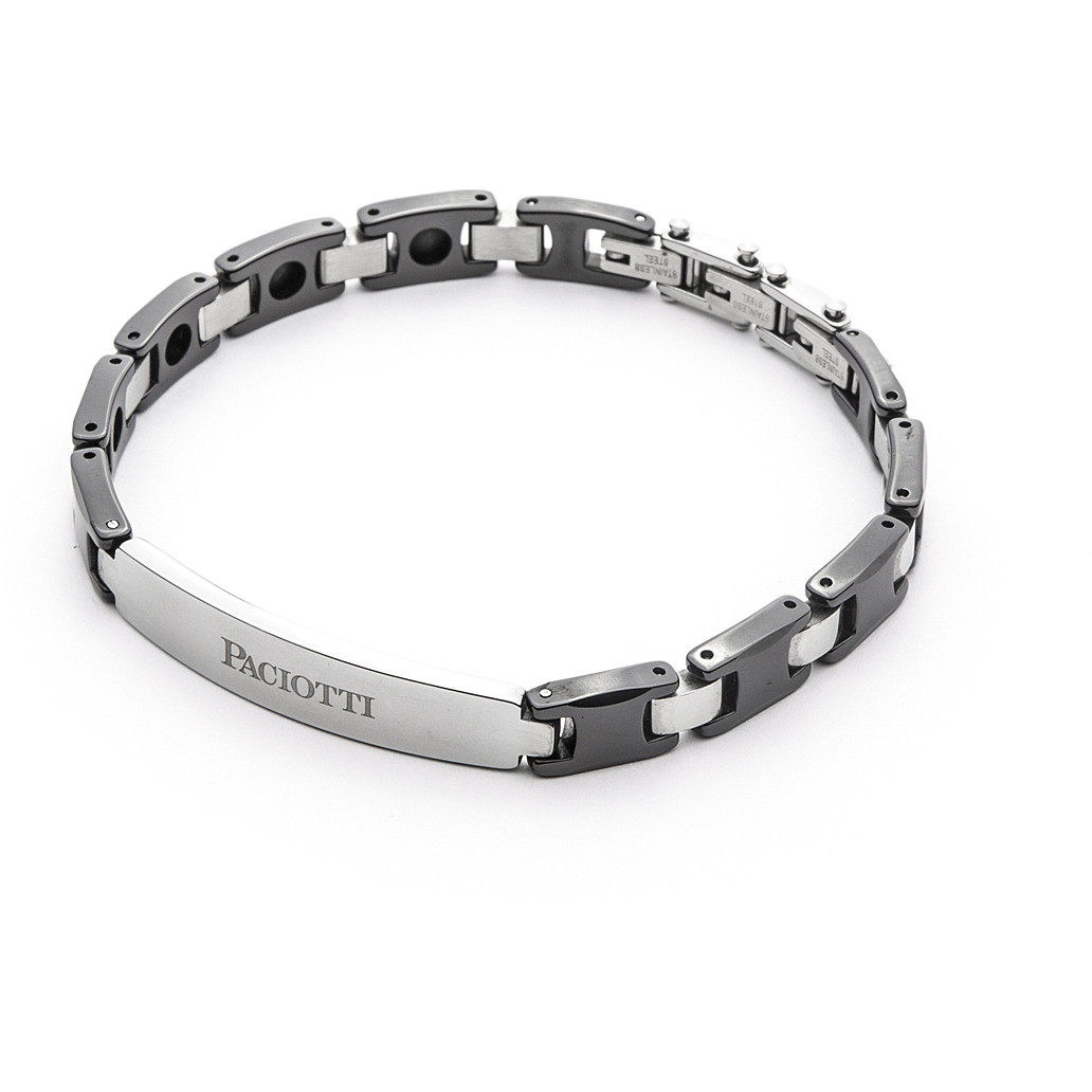 Bracciale da Uomo in Acciaio e Ceramica Nera con Targhetta Centrale.