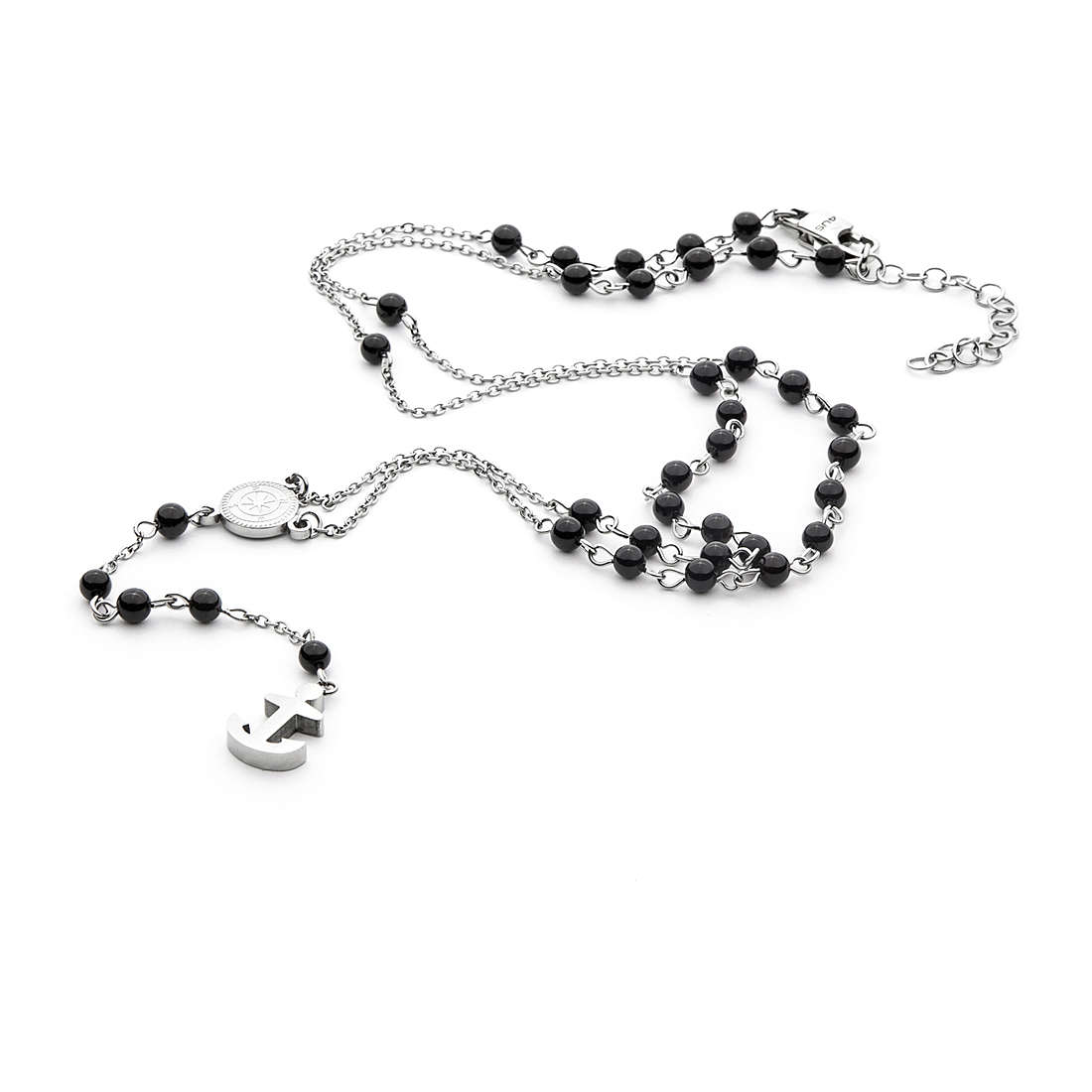 Collana Da Uomo Di 4Us Cesare Paciotti, Con Pendente Ancora Realizzata In Acciaio e Perle Nere Con Finitura Acciaio.