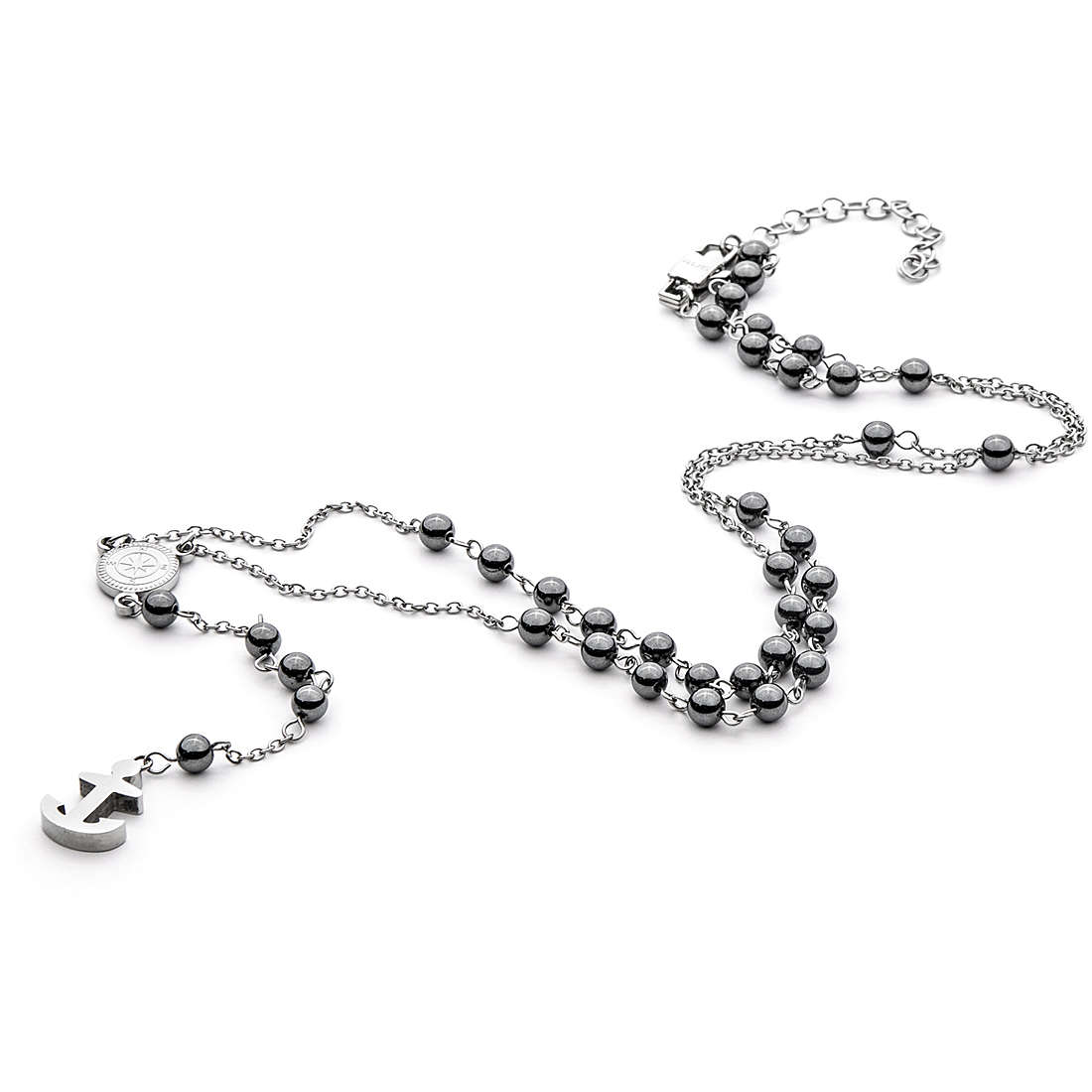Collana Da Uomo Di 4Us Cesare Paciotti, Con Pendente Ancora Realizzata In Acciaio ed Ematite Con Finitura Acciaio.