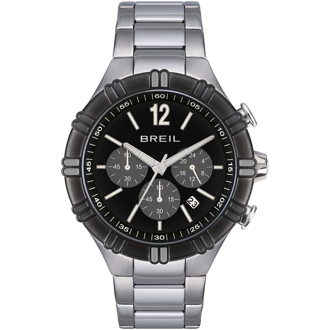 Orologio cronografo da uomo di Breil della collezione b rise. Orologio cronografo con cassa di 44 mm realizzata realizzata in acciaio lucido. Quadrante nero con dettagli bianchi, lunetta in acciaio nero con logo "b" agli indici, sfere e indici con luminous. Contatori grigi e sfere bianche. Bracciale in acciaio satinato con sezione centrale lucida. Chiusura con fermaglio di sicurezza. Funzione: datario. Il vetro è minerale con trattamento antiriflesso. Il fondello è a vite. Il movimento è tmi vd53 al quarzo. La resistenza all'acqua è di: 10 atm. La referenza e' tw1948