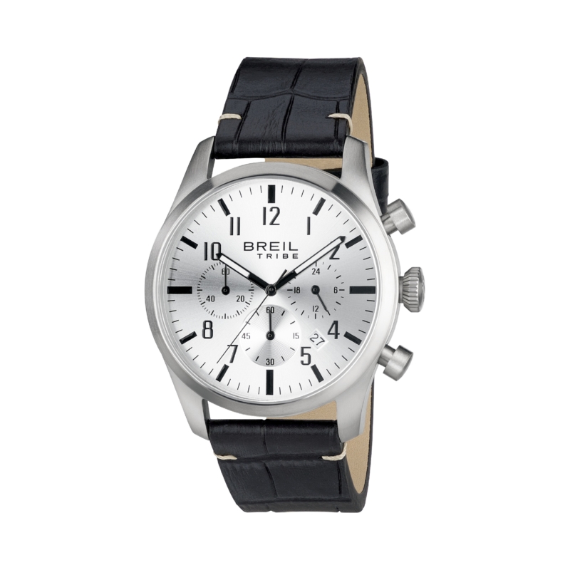 Cronografo maschile con cinturino in pelle e cassa in acciaio, orologio sportivo dal look classico. Movimento: VD53 TIME MODULE