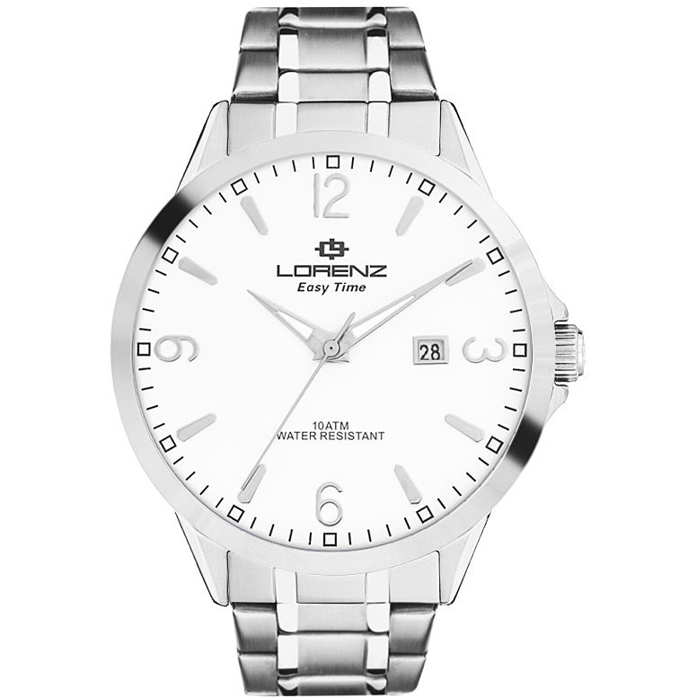 Orologio Solo Tempo Da Uomo Di Lorenz Della Collezione Easy Time. Orologio Realizzato In Acciaio Con Cassa Rotonda E Vetro K1. Orologio Con Cassa Del Diametro Di 42 Mm. Quadrante Di Colore Bianco Arabe Con Indici. Il Cinturino E' Realizzato In Acciaio. Orologio Con Chiusura A Scaletta. Misura Anse: 20 Mm. Lunghezza Cinturino: 20 Cm. Resistenza All'Acqua: 10 Atm. Movimento Seiko Pc32-3. Funzioni: Tre Sfere E Calendario. Orologio Dotato Di Datario. La Referenza È 030151Aa