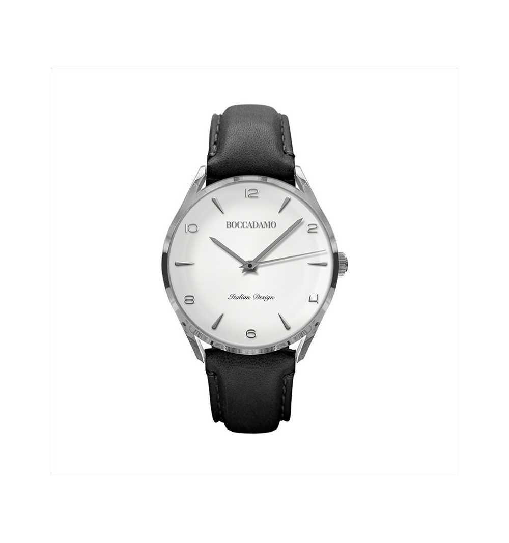 Orologio da polso vintage con quadrante argentato e cinturino in vera pelle nera.