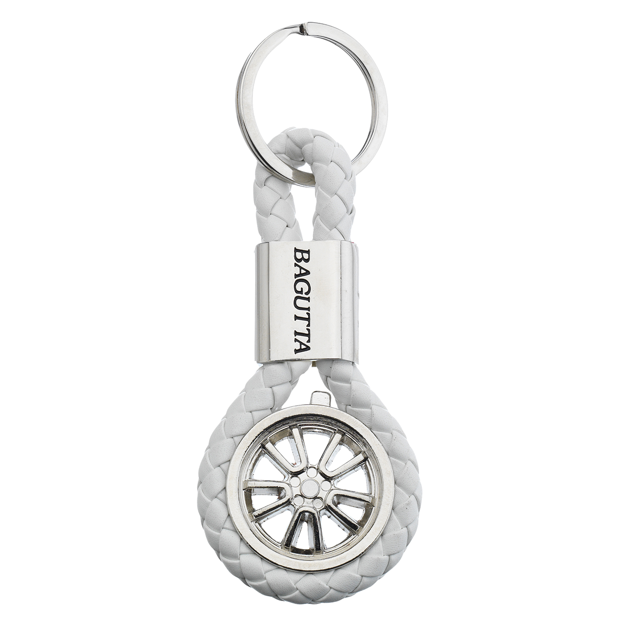 Portachiavi Con Ruota E Cordone Similpelle Bianco 9,6 Cm