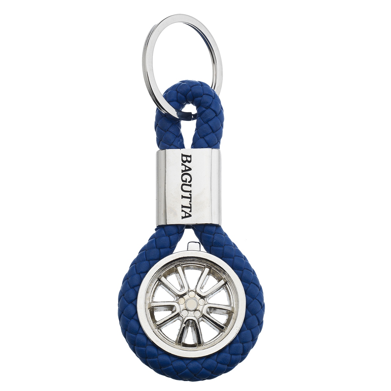 Portachiavi Con Ruota E Cordone Similpelle Blu 9,6 Cm