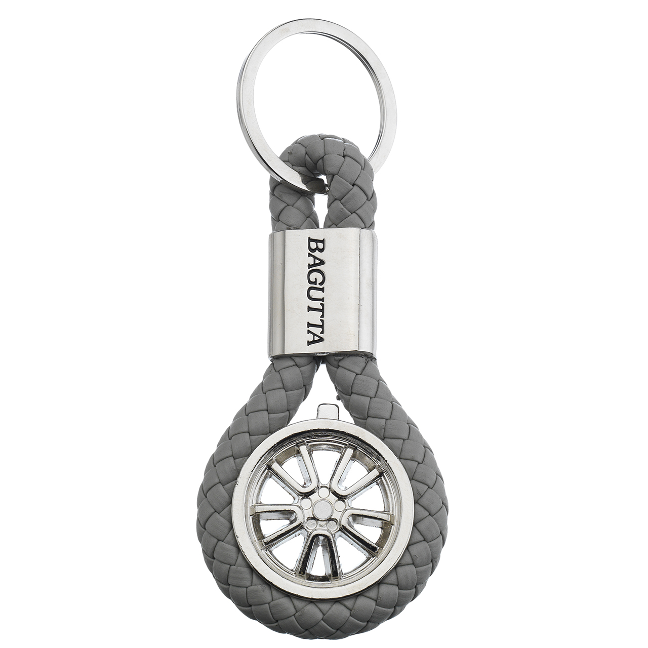Portachiavi Con Ruota E Cordone Similpelle Grigio 9,6 Cm