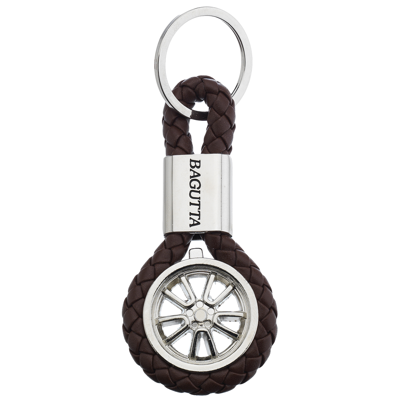 Portachiavi Con Ruota E Cordone Similpelle Marrone 9,6 Cm