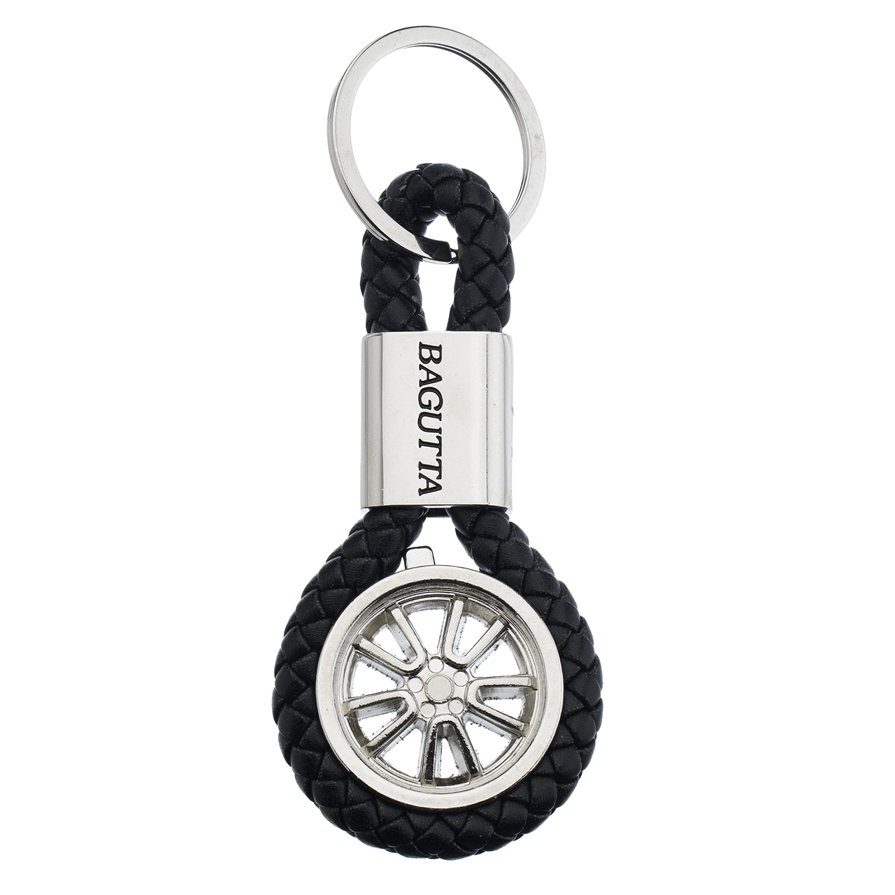 Portachiavi Con Ruota E Cordone Similpelle Nero 9,6 Cm